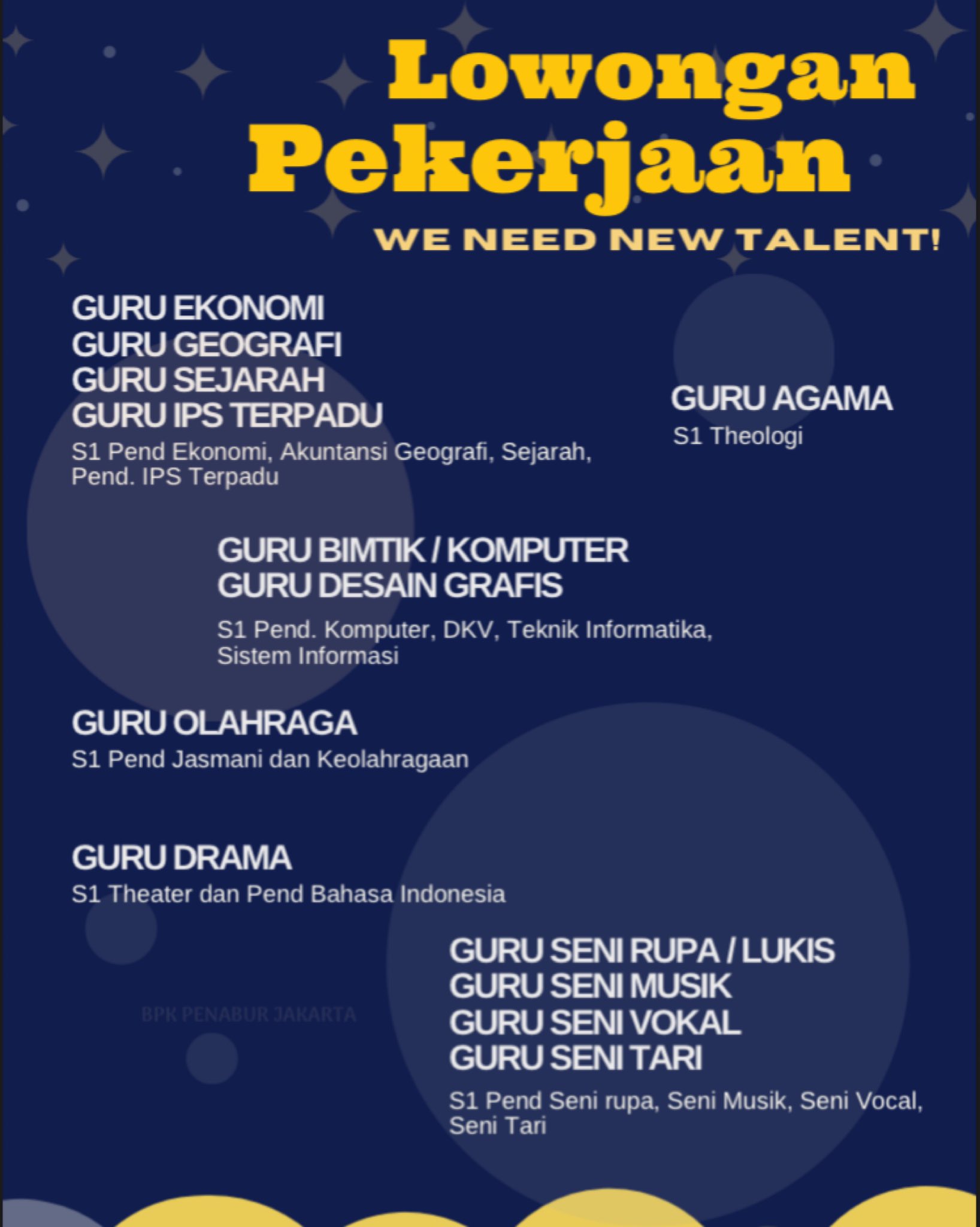 Lowongan Kerja Guru Bpk Penabur Jakarta / Guru olahraga di jakarta cari di antara 18.500+ lowongan kerja terbaru pekerjaan penuh waktu, sementara dan paruh waktu langganan informasi lowongan kerja cepat & gratis pemberi kerja terbaik di jakarta kerja:. Ada perusahaan yang sedang membuka kesempatan lowongan kerja guru, guru, education consultant, videographer dan banyak lagi di daerah jakarta melalui indeed.com. Sekolah bpk penabur serang sedang membutuhkan tenaga pengajar (guru) dengan bidang studi lowongan lain. Now it is opening an office in jakarta as head office. Kami tidak dapat menemukan pekerjaan yang cocok dengan kriteria anda. Pencarian terkait lowongan bpk penabur jakarta spk.